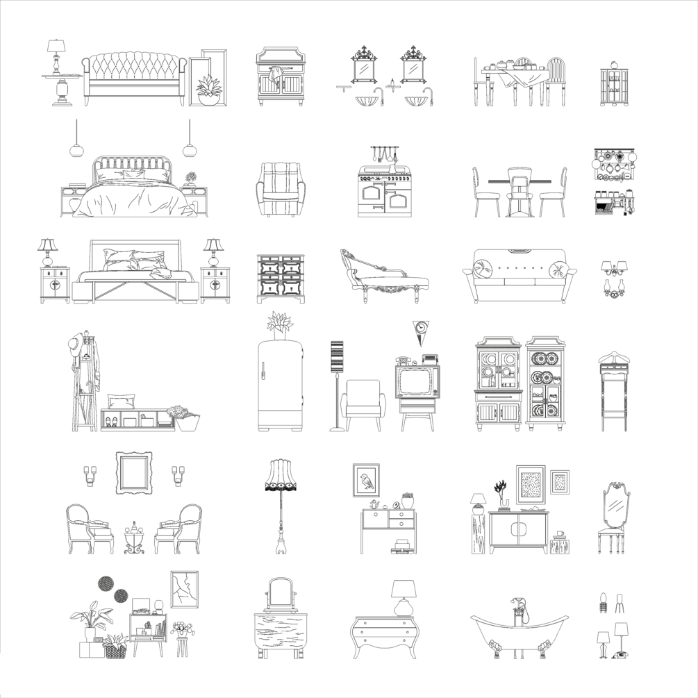 Content: This pack includes common style recolorable and resizable cad blocks. Suitable for interior projects.